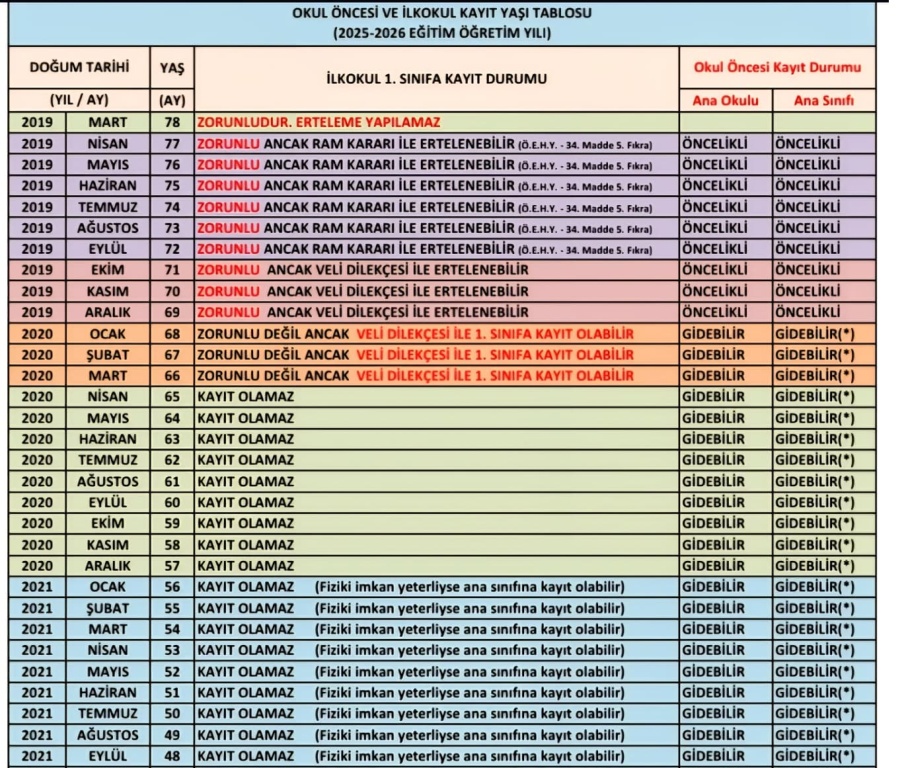 1. Okul kaydı için gelen Öğrencinin Eylül 2025 tarihi itibariyle 48 ayını doldurmuş olması gerekmektedir.